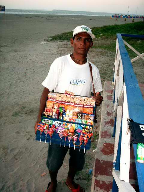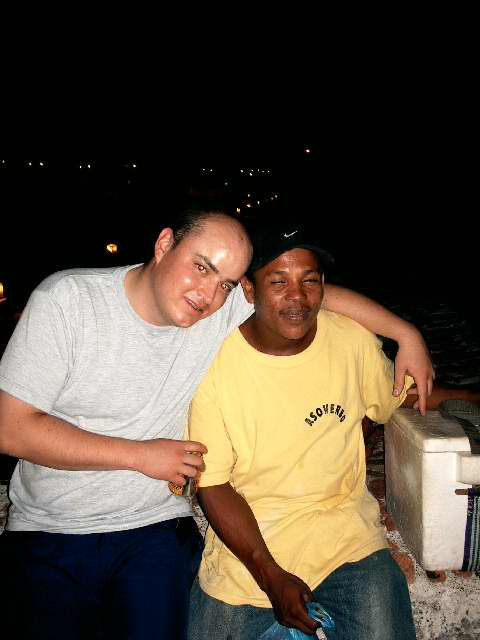 (Izq) Tico y el vendedor de cervezas frías, rumbiando en la muralla: "Oiga, vea, de aquí no se me mueva". Más tarde les digo que restaurante es éste.