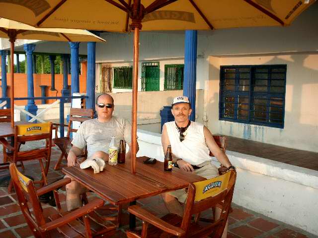 A dos cuadras del hotel Las Americas, yo y Tico nos saboreamos unas Aguilas...Y (Derecha) El señor Reynaldo Peinado aclaró, al yo revelarle mi interés por el cine colombiano, que "La pezuña del diablo" fue hecha en Cartagena...