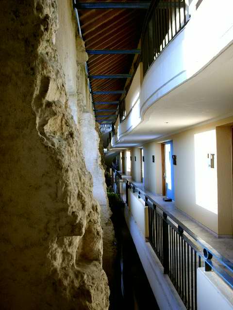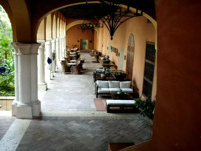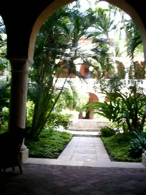 El patio (Izq), tal vez tal cual como lo vieron las monjas en un antaño, y uno de los halls originales tal vez por donde daban vueltas ellas, rezando rosarios.
