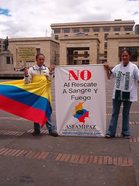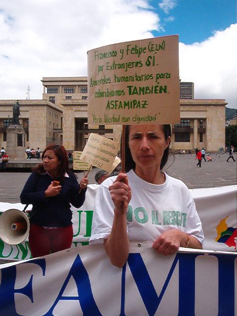 Marlene toma uno minutos para aclarar que estas familias de los secuestrados se opone al rescate a sangre y fuego...y con buen motivo si nos acordamos del Goverandor de Antioquia. |