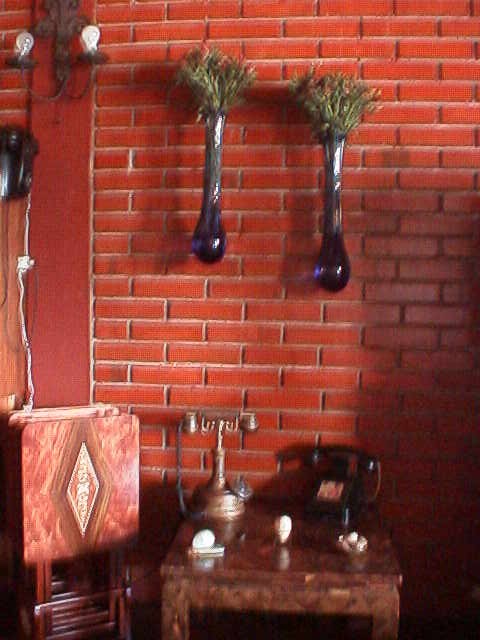 Las fotos no le hacen justicia al extraordinario trabajo y dedicación que demuestra la decoración de la casa de Gustavo. Observe las lámparas Coleman, colgadas del techo, pero con bombillos eléctricos. |