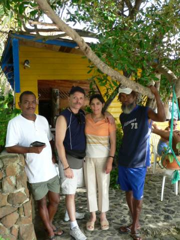 Fellow vacationer, Mr. Victor Buendía invited us to visit him in Chocó state, at the cabins of Capurganá. Fellow-guide and outboard captain, Mr Beto leans on the branch.